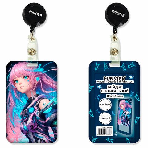 Вертикальный бейдж с лентой FUNSTER для именной карточки предназначен для идентификации сотрудников в компаниях, подойдет для школьного пропуска или проездного.Бейдж в формфакторе "слайдер" с держателем рулеткой 70 см. Изготовлен из жесткого пластика, гарантирующего долгий срок службы и защищающего от внешних воздействий Вашу именную карту. Идеально подойдёт для чувствительных к механическим повреждениям магнитных карт и пропусков. Рисунок на бейдже нанесен с применением 3D печати, что создает приятный тактильно опыт использования. Модель исполнена в актуальном футуристическом аниме дизайне. Размер вкладыша 85х54 мм. Обратная сторона вкладыша подготовлена под персонализацию - фото, ФИО, должность и название компании.