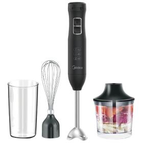 Блендер погружной 3 в 1 Midea MC-BL605 это многофункциональный прибор. Благодаря сменным насадкам MC-BL605 выполняет работу нескольких кухонных устройств: блендера, миксера и измельчителя. Максимальная мощность в режиме турбо - 1000 Вт, номинальная мощность прибора - 600 Вт. Имеет плавную регулировку скорости от L - низкая скорость для взбивания яиц, измельчения фруктов и овощей, до H - высокая скорость для взбивания сливок, колки льда, размалывания твёрдых веществ. При измельчении густых и твердых продуктов необходимо включать блендер несколько раз по 10 секунд с перерывами по 5-10 секунд для избежания перегрузок двигателя. Удобная длина кабеля 120 см для оптимального использования. Аксессуары можно мыть в посудомоечной машине.