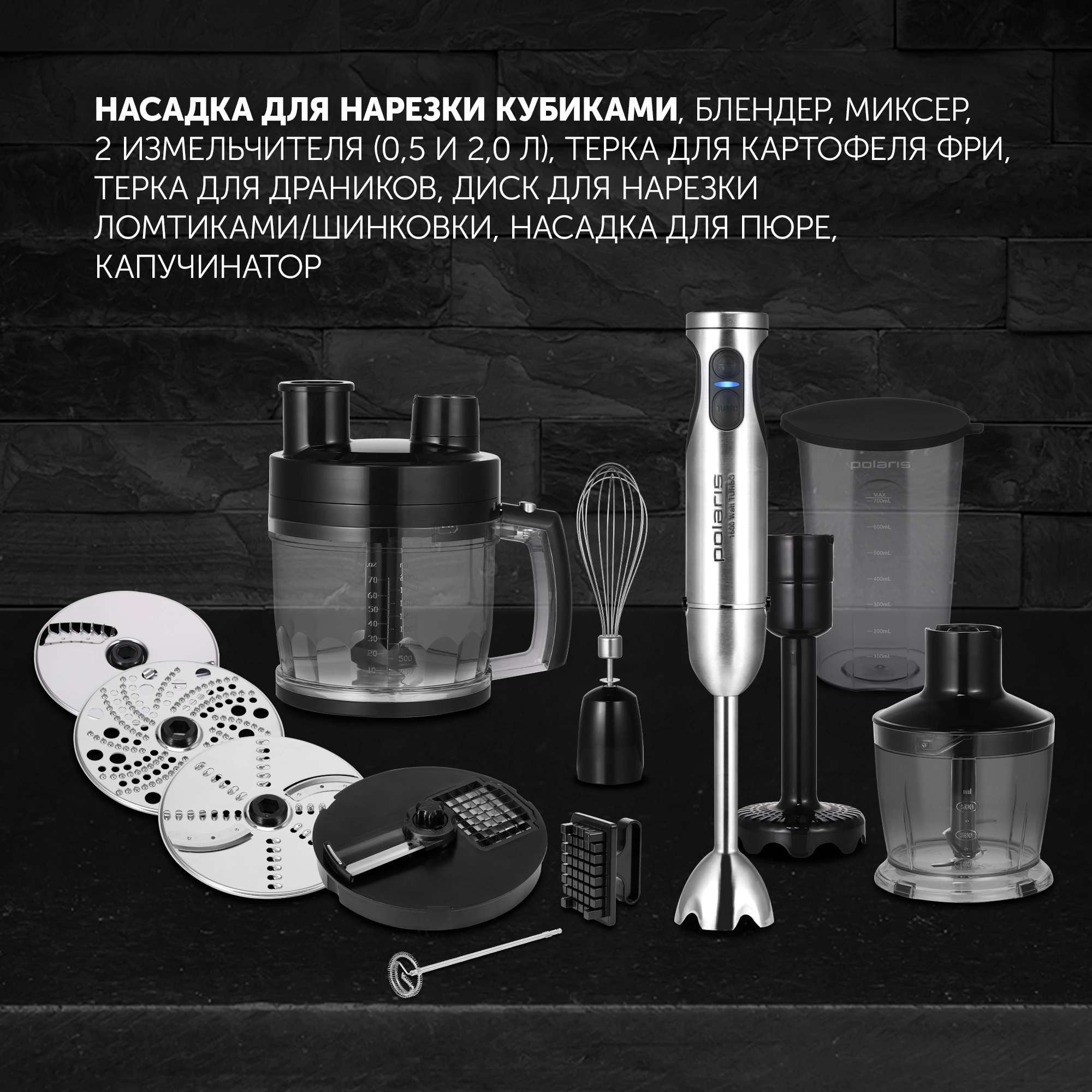 Блендер погружной Polaris PHB 1637AL CUBE 1600Вт нержавеющая сталь/черный / 4dealer.ru