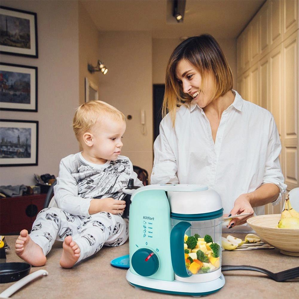 Для прикорма маленьких детей приготовленную пищу необходимо измельчить до нужной консистенции.Блендер-пароварка Kitfort КТ-2305 готовит в два приема: варит на пару, а затем измельчает и смешивает.Блендер-пароварка оснащена удобными кнопками управления.Благодаря корзине, пар во время готовки постоянно циркулирует в чаше и равномерно прогревает продукты. По окончании готовки прибор автоматически отключается, поэтому пища не переварится.Все части блендера, кроме моторного блока, можно мыть водой с мылом. Внешний вид и/или характеристики товара могут быть изменены производителем в соответствии с производственным процессом.