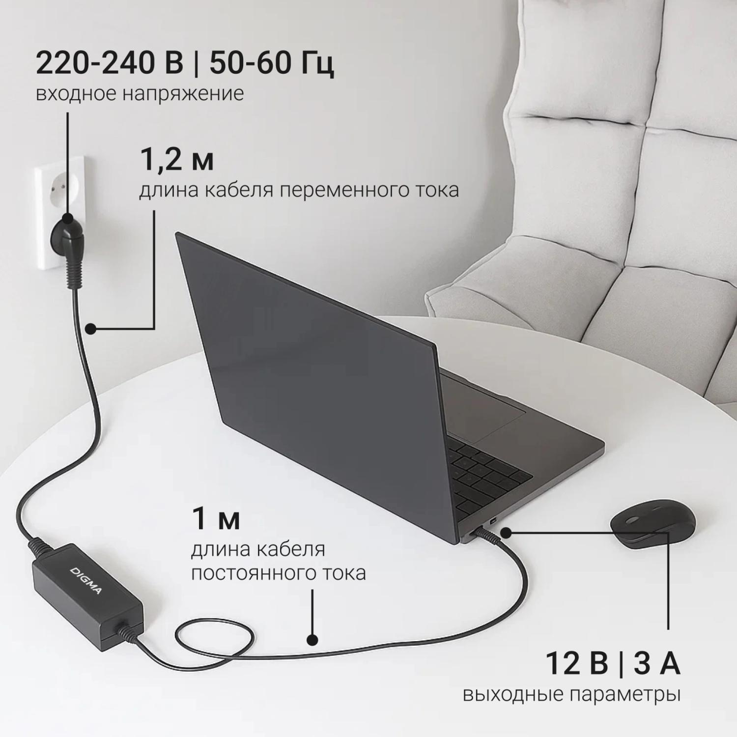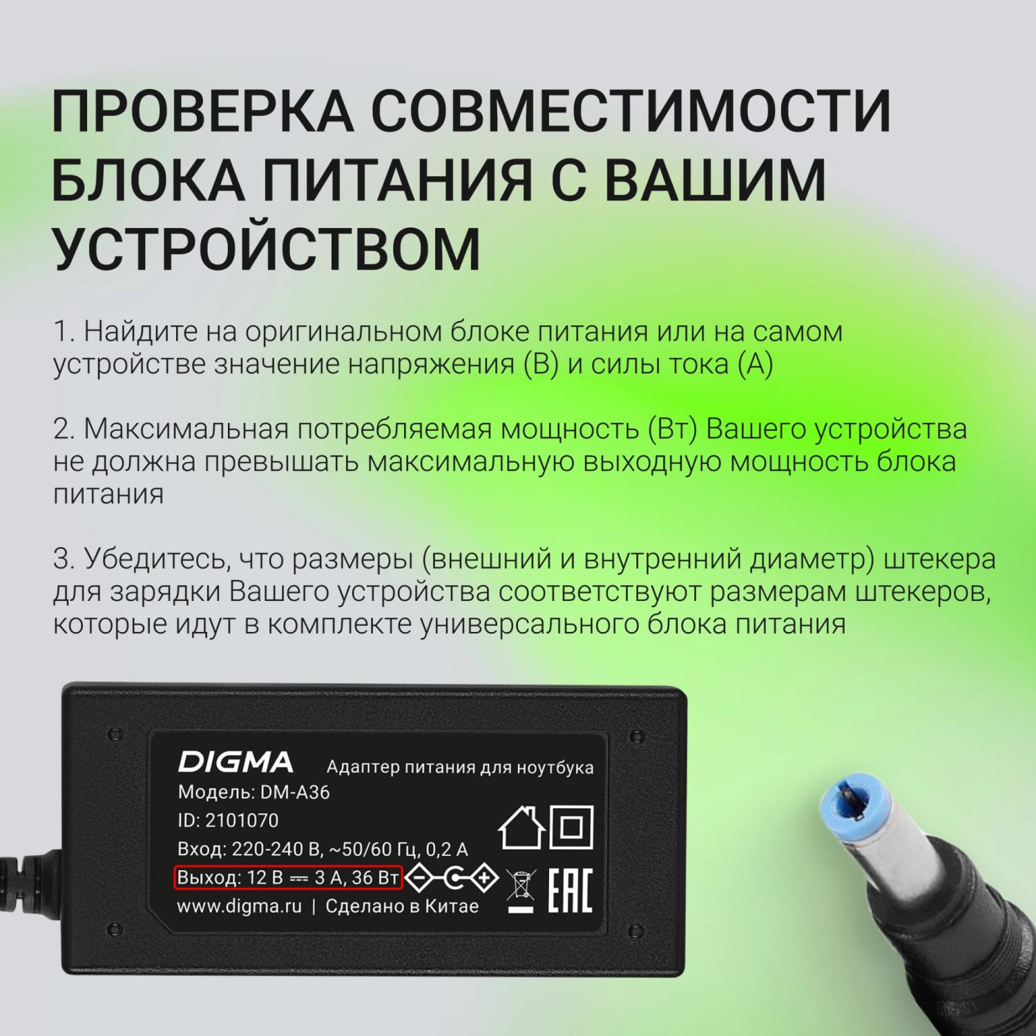Блок питания Digma DM-A36 автоматический 36W 12V-12V 3-коннект. 3A от бытовой электросети / 4dealer.ru