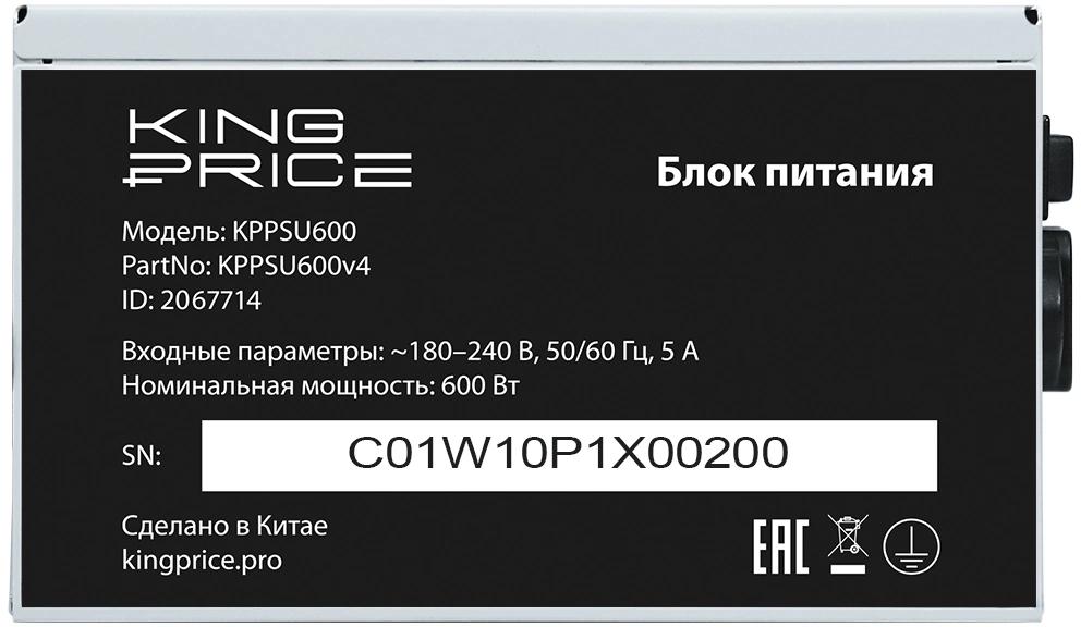 Блок питания KingPrice ATX 600W KPPSU600 (20+4pin) 120mm fan 4xSATA / 4dealer.ru