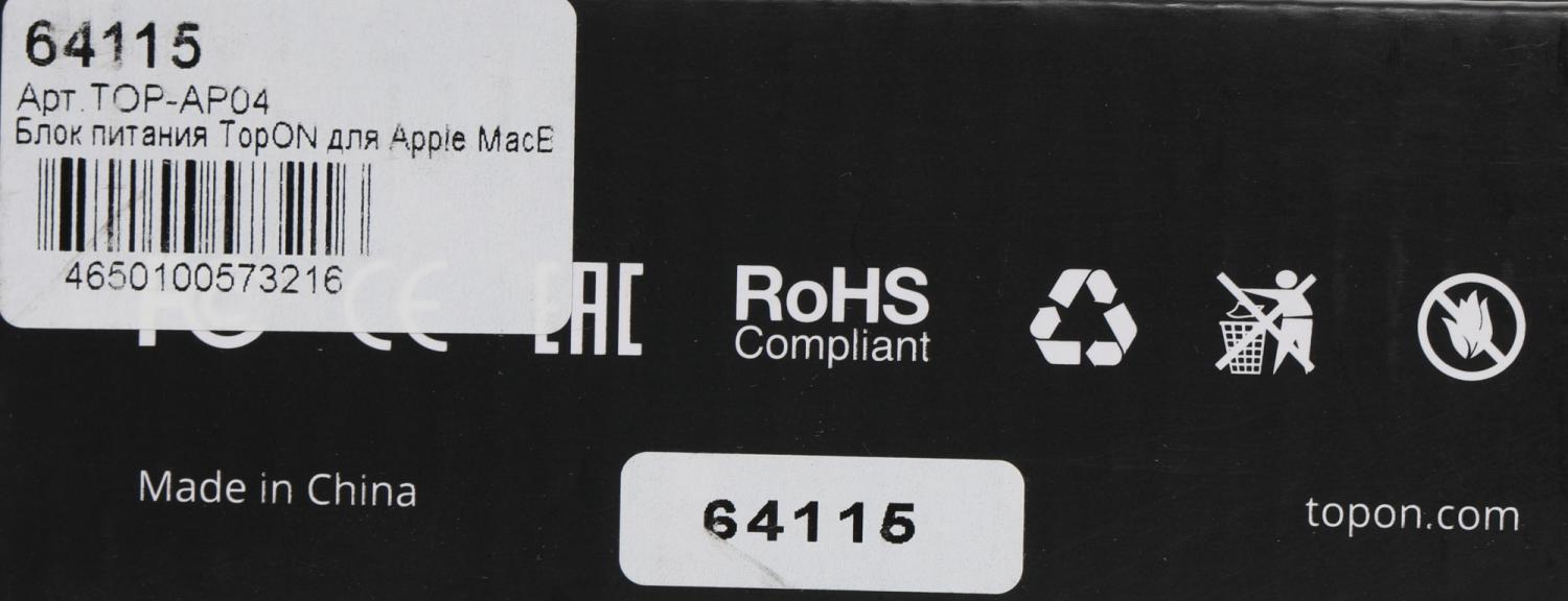 Описание Мощность 85W Напряжение 18.5V Сила тока 4.6A Коннектор MagSafe 1