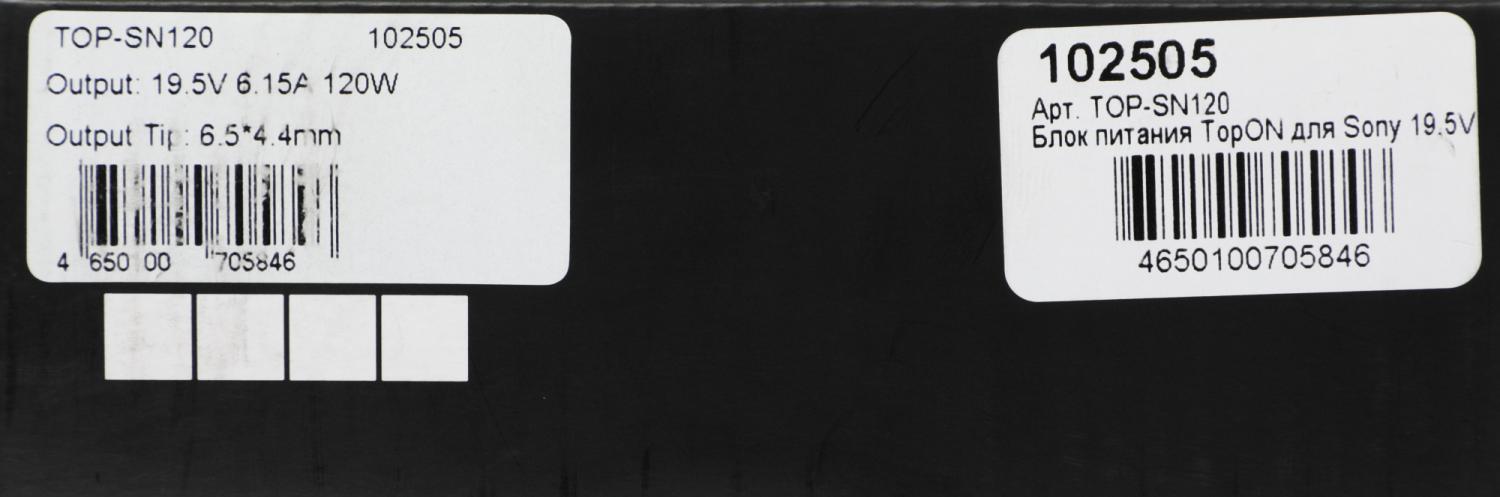 | Описание | Блок питания TopON для Sony 19.5V 6.15A (6.5x4.4) 120W ADP-120MB TOP-SN120 |