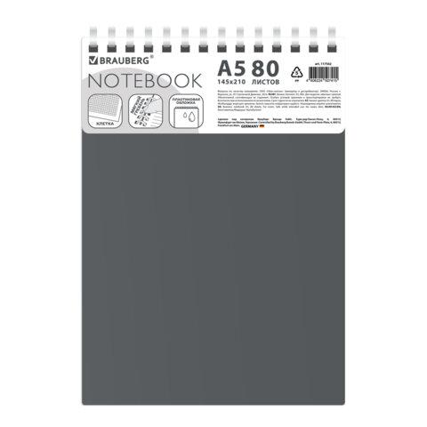 Стильный и практичный блокнот BRAUBERG — идеальный помощник для записей, заметок и планирования. Прочная пластиковая обложка надежно защищает страницы от повреждений и долго сохраняет безупречный внешний вид.Прочная пластиковая обложка надежно защищает внутренний блок от повреждений и влаги, продлевая срок службы блокнота. Внутри — 80 листов высококачественной офсетной бумаги плотностью 70 г/м2 и белизной 100%, обеспечивающей комфортное письмо. Линовка блока - клетка. Листы скреплены мягким силиконовым гребнем, что обеспечивает удобство использования блокнота. Универсальный формат А5 делает его отличным выбором для учебы, работы и повседневного использования.