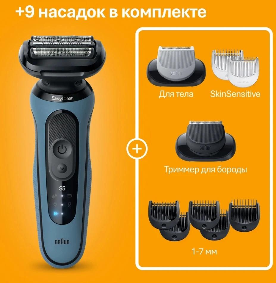 Бритва сетчатая Braun Series 5 52-A1650s реж.эл.:3 питан.:аккум. синий / 4dealer.ru
