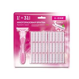 Бритва X-ONE для женщин с 31 сменной кассетой обеспечивает чистое бритьё и гладкость кожи. Система из 3 тонких лезвий и увлажняющая полоска гарантируют комфортное бритьё и защиту кожи от раздражений.Бритвенный станок X-ONE с системой из 3 лезвий для близкого и чистого бритья. Увлажняющая полоска защищает кожу, а плавающая головка и противоскользящая ручка обеспечивают уверенный хват. Эргономичный дизайн и 31 сменная кассета для долгосрочного использования.