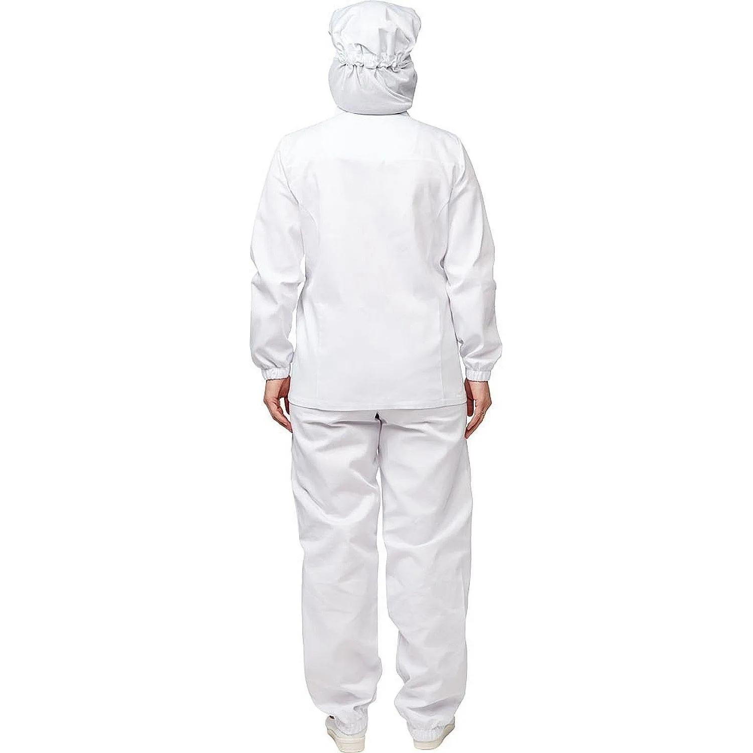 Брюки для пищевого производства джоггеры у17-БР на резинке белые оптима 150 г/кв.м (размер 52-54, рост 158-164)<br><br>Брюки предназначены для использования на предприятиях пищевой промышленности. Модель универсальна — подходит как для мужчин, так и для женщин. Выполнена из лёгкой и практичной ткани, устойчивой к износу и загрязнениям.<br><br>Материал — смесовая ткань оптима с составом 65% полиэстера и 35% хлопка, плотностью 150 г/кв.м. Ткань хорошо пропускает воздух, сохраняет форму и цвет после многократных стирок. <br><br>Защитные свойства: <br>— от общих производственных загрязнений.<br><br>Посадка регулируется поясом на круговой резинке со шнурком, вшитым с внутренней стороны. Верхний край оформлен цельнокроеной обтачкой. Манжеты по низу брюк собраны на эластичную ленту. Средний шов усилен отстрочкой на 0.1 см. Карманов нет.<br><br>Рекомендуется стирка при температуре не выше 40 градусов, деликатный отжим и сушка. Допускается глажка при температуре до 110 градусов. Химчистка запрещена.<br><br>Брюки соответствуют требованиям ТР ТС 019/2011 и ГОСТ 12.4.280-2014.<br><br>Коллекции одежды для пищевого производства у17 представлена брюки у17-БР, курткой у17-КУ из женской или мужской коллекции, утеплённым жилетом у17-ЖЛ и халатом у17-ХЛ.<br><br>Подобрать размер <br><br>Цвет на изображении товара в интернет-магазине или в печатном каталоге может отличаться от оригинала из-за особенностей цветопередачи монитора.