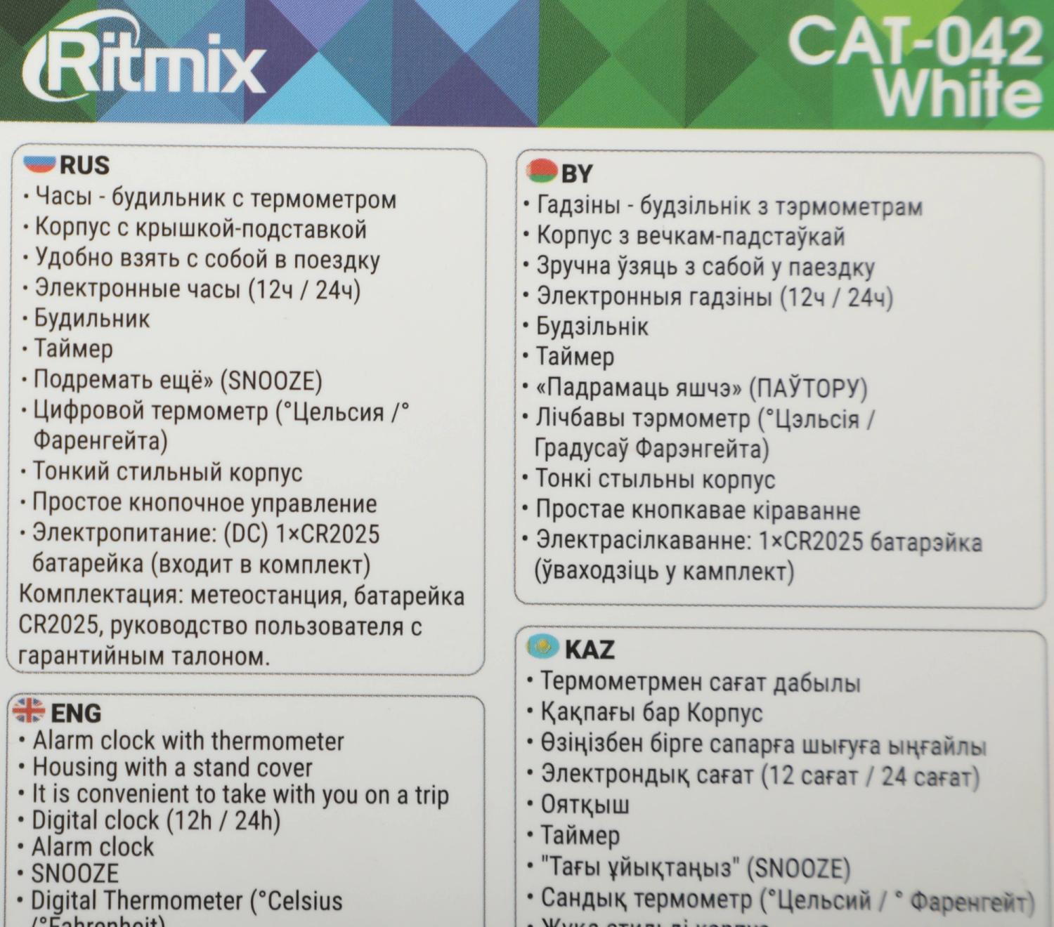 | Особенности | Часы-будильник со встроенным термометром, простое кнопочное управление, складной корпус, удобно взять с собой в поездку |