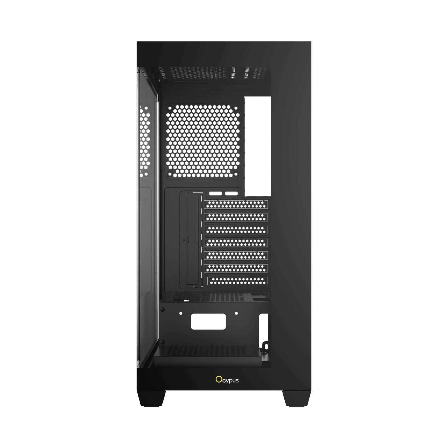 Захватывающий панорамный обзор с улучшенной эффективностью охлаждения. Безрамочная конструкция с двойными панелями из 4-мм закаленного стекла высокой прозрачности демонстрирует внутренние компоненты корпуса, создавая захватывающий визуальный эффект как внутри, так и снаружи. Оптимально размещенные точки крепления для охлаждающих компонентов и продуманная система воздушного потока корпуса обеспечивают высокую циркуляцию воздуха, повышая эффективность охлаждения и раскрывая мощность вашей системы. Умное расположение пространства внутри корпуса позволяет устанавливать комплектующие больших размеров, обеспечивая легкость в сборке даже для высокопроизводительных систем.