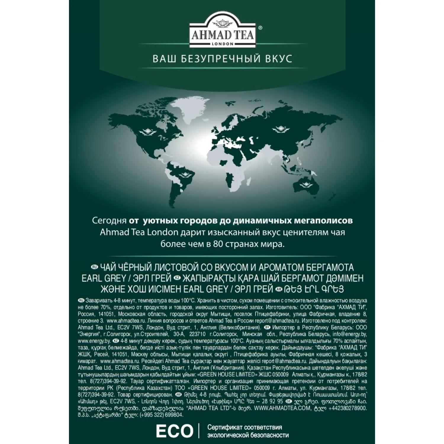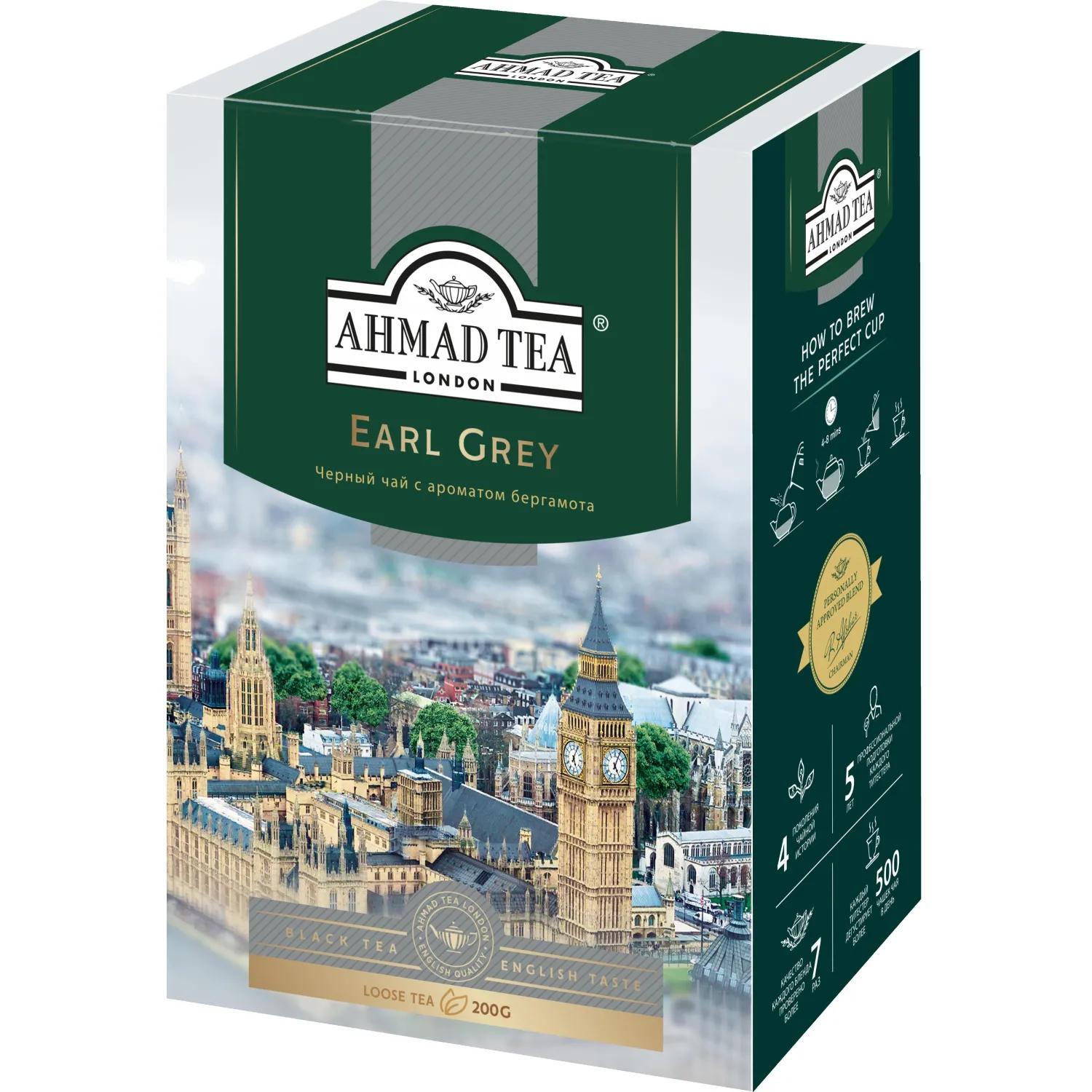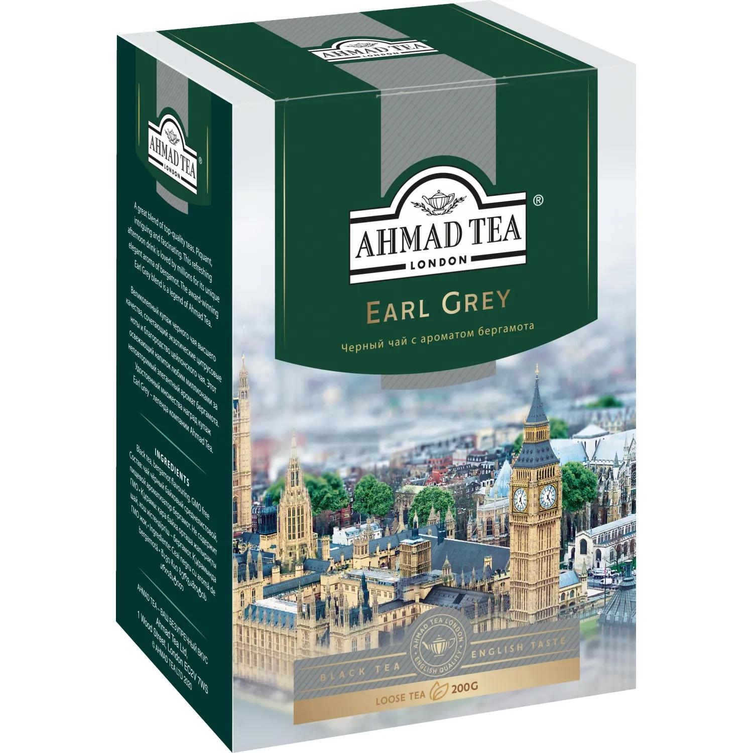 <br><br>Великолепный купаж чёрного чая высшего качества, сочетающий экзотические цитрусовые ноты и благородство цейлонского чая. Этот освежающий напиток любимый миллионами за неповторимый элегантный аромат бергамота. Удостоенный множества наград купаж Earl Grey — легенда компании Ahmad Tea.<br><b>Состав:</b> чай чёрный байховый среднелистовой, пищевой ароматизатор бергамот.<br><b>Способ приготовления:</b> 4-8 минут, температура воды 100 °С.<br><b>Вес:</b> 200 г.<br><b>Тип упаковки:</b> картонная коробка.<br><b>Условия хранения:</b> хранить в сухом помещении при относительной влажности воздуха не более 70%.<br><b>Страна производства:</b> Россия.