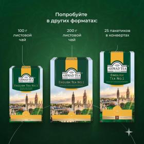 Чай черный Ahmad Tea English № 1 100 пакетиков (бергамот). Черный чай Ahmad English № 1 — смесь эксклюзивных сортов чая с легким ароматом бергамота. Чашка этого чая делает общение добрым и приятным. Прекрасный напиток для любого времени дня. Идеальное сочетание мягкого вкуса, аромата, цвета и крепости.<br><b>Состав:</b> чай черный байховый листовой мелкий, пищевой ароматизатор бергамот.<br><b>Способ приготовления:</b> залейте чайный пакетик горячей воды, дайте чаю настояться 3-5 минут.<br>Количество пакетиков в упаковке: 100 штук.<br><b>Тип упаковки:</b> картонная коробка.<br><b>Условия хранения:</b> хранить в чистом, хорошо вентилируемом помещении без посторонних запахов при относительной влажности воздуха не более 70%.<br><b>Страна производства:</b> Россия.