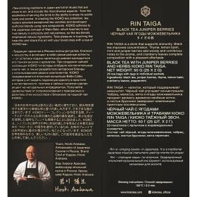 Чёрный чай Kioko Rin Taiga сочетает глубокие ноты традиционного сорта с терпкостью ягод можжевельника и свежестью трав. В каждом пакетике — натуральная смесь из чабреца, мелиссы, брусники и мяты, которая раскрывает богатый аромат.<br><b>Состав:</b> чай чёрный, ягоды можжевельника, чабрец, мелисса, листья брусники, мята перечная.<br><b>Способ приготовления:</b> заварить горячей водой 100 С и дать настояться 2-3 минуты.<br><b>Вес / количество пакетиков в упаковке:</b> 50 г / 25 пакетиков.<br><b>Тип упаковки:</b> картонная коробка.<br><b>Условия хранения:</b> хранить в сухом месте при относительной влажности воздуха не более 70% в плотно закрытой упаковке отдельно от сильно пахнущих продуктов. <br><b>Страна производства:</b> Россия.