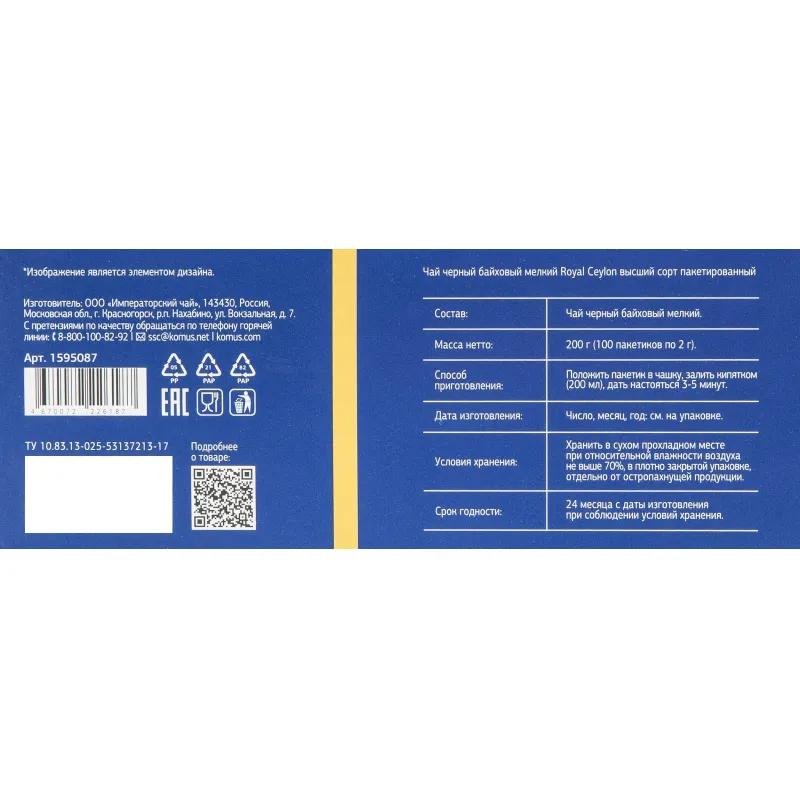 Чай Деловой Стандарт Roayl Ceylon черн. 100 пакx2гр / 4dealer.ru