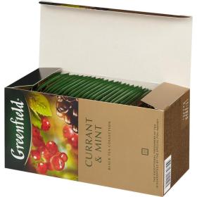 Чай Greenfield Currant and Mint черный 25 пакетиков. Чудесная композиция на основе индийского чая открывает оригинальный, очень «летний» вкус, в котором гармонично сочетаются смородиновые оттенки — легкая сладость черной и тонкая кислинка красной. Свежая пряность мяты вносит завершающий штрих, подчеркивая глубину и насыщенность индийского чая.<br><b>Состав:</b> чай черный, мята, ароматизатор «красная и белая смородина», гибискус, листья черной смородины, измельченные ягоды черной смородины.<br><b>Способ приготовления:</b> залейте чайный пакетик горячей воды, дайте чаю настояться 5-7 минут.<br>Количество пакетиков в упаковке: 25 штук.<br><b>Тип упаковки:</b> картонная коробка.<br><b>Условия хранения:</b> хранить в чистом, хорошо вентилируемом помещении без посторонних запахов при относительной влажности воздуха не более 70%.<br><b>Страна производства:</b> Россия.