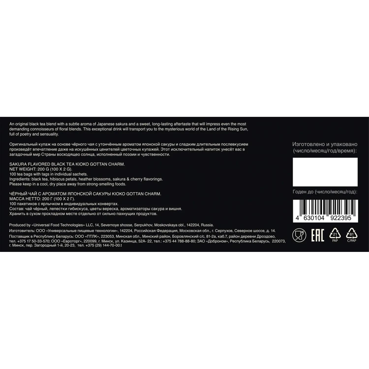 Чай Kioko Gottan Charm с ароматом японской сакуры, чёрный, 100пак / 4dealer.ru