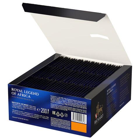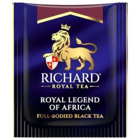 Чай черный Richard Royal Legend of Africa 100 пакетиков. Купаж трех африканских сортов черного чая, насыщенный вкус c приятным ореховым оттенком. С высокой плотностью и долгим послевкусием. Чай с лучших плантаций Восточой Африки. В индивидуальных сашетах. Состав: чай черный байховый. Способ приготовления: залейте пакетик вскипевшей водой, дайте напитку настояться 2-4 минуты. Вес / количество пакетиков в упаковке: общий вес - 200 г, количество пакетиков - 100 шт. Тип упаковки: картонная коробка. Условия хранения: хранить в закрытой упаковке, вдали от предметов, имеющих сильный запах, при относительной влажности воздуха не выше 70 %. Страна производства: Россия.