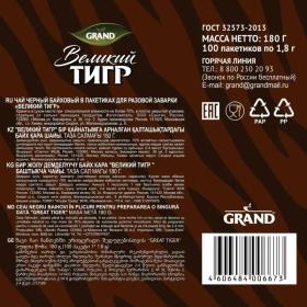 Чай Великий Тигр Отборный черный, 100 пакетиков с ярлычками 2110016