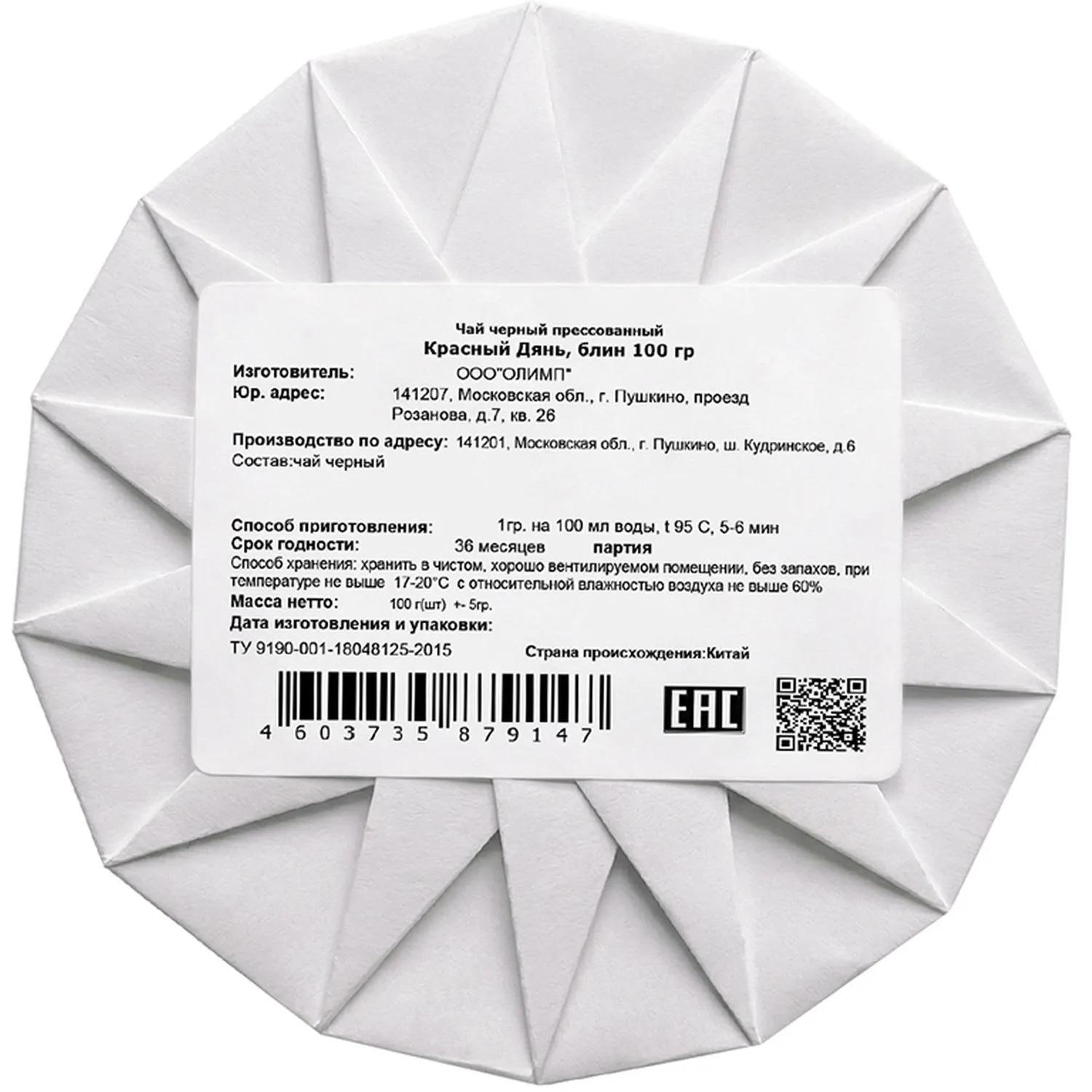 Чай Weiserhouse Красный Дянь, блин, лист, черн, 100г / 4dealer.ru