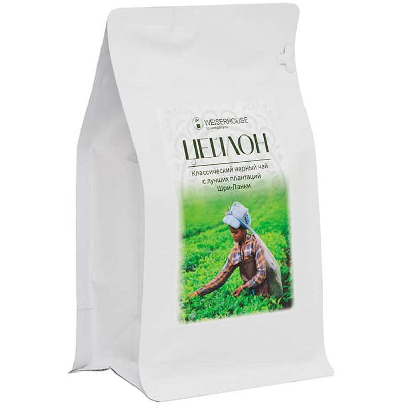 Чай листовой чёрный Weiserhouse Цейлонский 150 г<br><br>Высококачественный чёрный крупнолистовой цейлонский чай, собранный на лучших плантациях Шри-Ланки. Настой коричневого цвета, насыщенный и терпкий, с приятным медовым послевкусием.<br><br><b>Состав:</b> чёрный чай.<br><b>Способ приготовления:</b> 1 г на 100 мл воды, t 95°C. Время заваривания 5-6 мин.<br><b>Вес:</b> 150 г.<br><b>Тип упаковки:</b> пакет.<br><b>Условия хранения:</b> хранить в чистом, хорошо вентилируемом помещении, без посторонних запахов, при температуре не выше 17-20°С с относительной влажностью воздуха не выше 70%.<br><b>Страна производитель:</b> Россия.