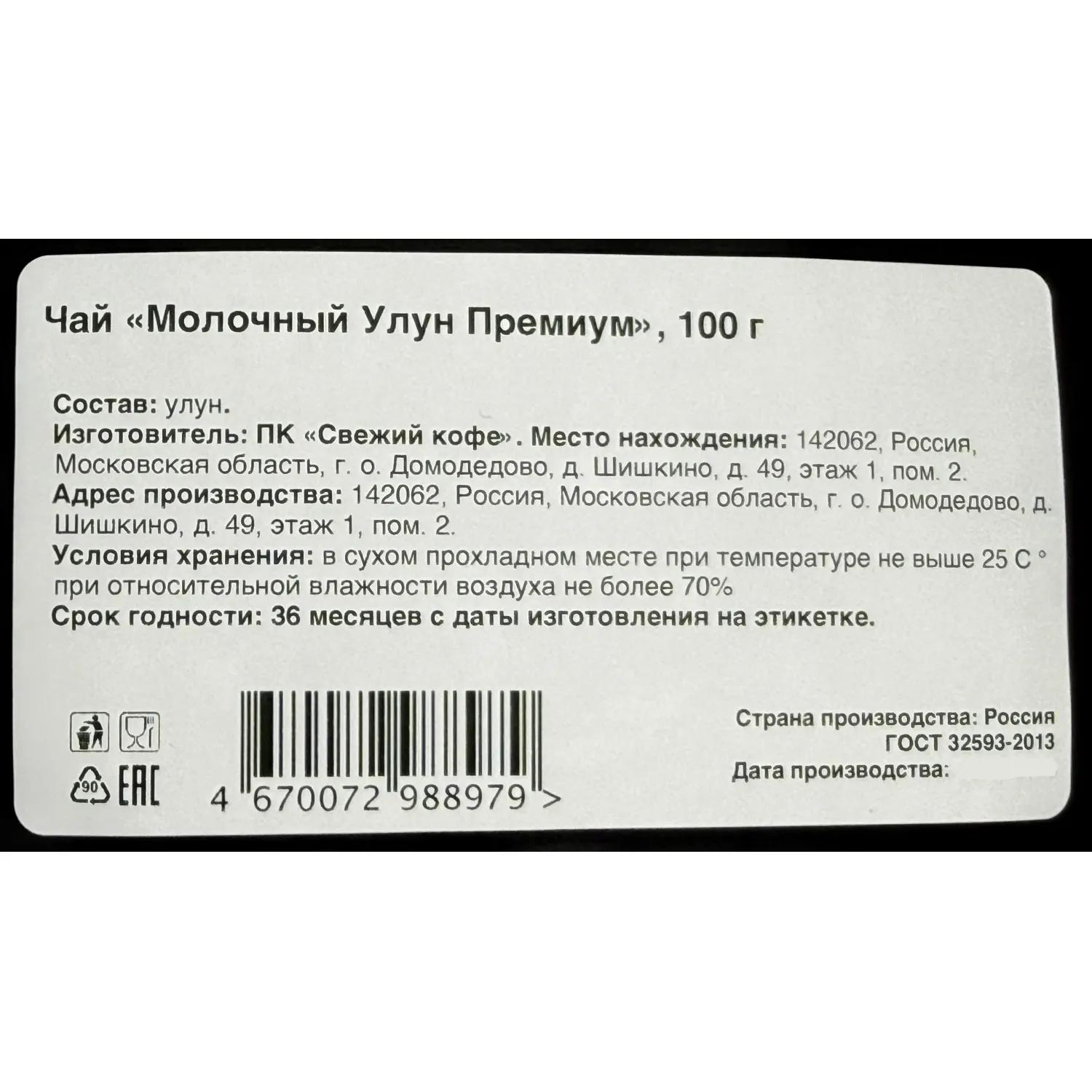 Букет чая отличается высокой концентрацией молочных нот: ирис и нагретое молоко, тропические цветы, сгущёнка, шоколадное масло. Тело аромата плотное, жирное, тяжёлое.<br>Настой плотный, сливочный, гладкий, приятный. Вкус яркий, выпуклый, с устойчивой сладостью, остающейся на послевкусии. Среди оттенков можно отметить белый шоколад, миндальный ирис, печенье с топлёным молоком.<br>Этот чай запомнится всем любителям искристых и богатых вкусов. Он будет хорош как сам по себе, так и в компании сладких закусок, понравится любителям «сладенького». Для заваривания возьмите фарфоровую или стеклянную посуду, глина не подойдёт из-за пористой структуры, она быстро пропитается этим ароматом.<br><b>Состав:</b> улун. <br><b>Способ приготовления:</b> залить горячей водой с температурой 90 С и настаивать 3-4 минуты. <br><b>Вес:</b> 100 г.<br><b>Тип упаковки:</b> пакет. <br><b>Условия хранения:</b> хранить в сухом прохладном месте при температуре не выше 25 С при относительной влажности воздуха не более 70%. <br><b>Страна производства:</b> Россия.