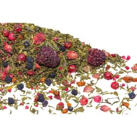 Китайский зелёный чай сенча с ягодами ежевики, облепихи, брусники и черноплодной рябины, а также кусочками клубники и малины. Свежий вкус зелёного чая прекрасно сочетается с сочностью спелых лесных ягод, создавая летнее настроение. Настой светло-зелёного цвета с ярким вкусом и ароматом. Бодрит, тонизирует, улучшает настроение и переносит в лесную чащу.<br><b>Состав:</b> китайский зелёный чай сенча, ягоды ежевики, облепихи, брусники и черноплодной рябины, кусочки клубники и малины.<br><b>Способ приготовления:</b> 1 г на 100 мл воды, t 75-85°C. Время заваривания 1-2 мин.<br><b>Вес:</b> 100 грамм.<br><b>Тип упаковки:</b> пакет.<br><b>Условия хранения:</b> хранить в чистом, хорошо вентилируемом помещении, без посторонних запахов, при температуре не выше 17-20°С с относительной влажностью воздуха не выше 70%.<br><b>Страна производитель:</b> Россия.