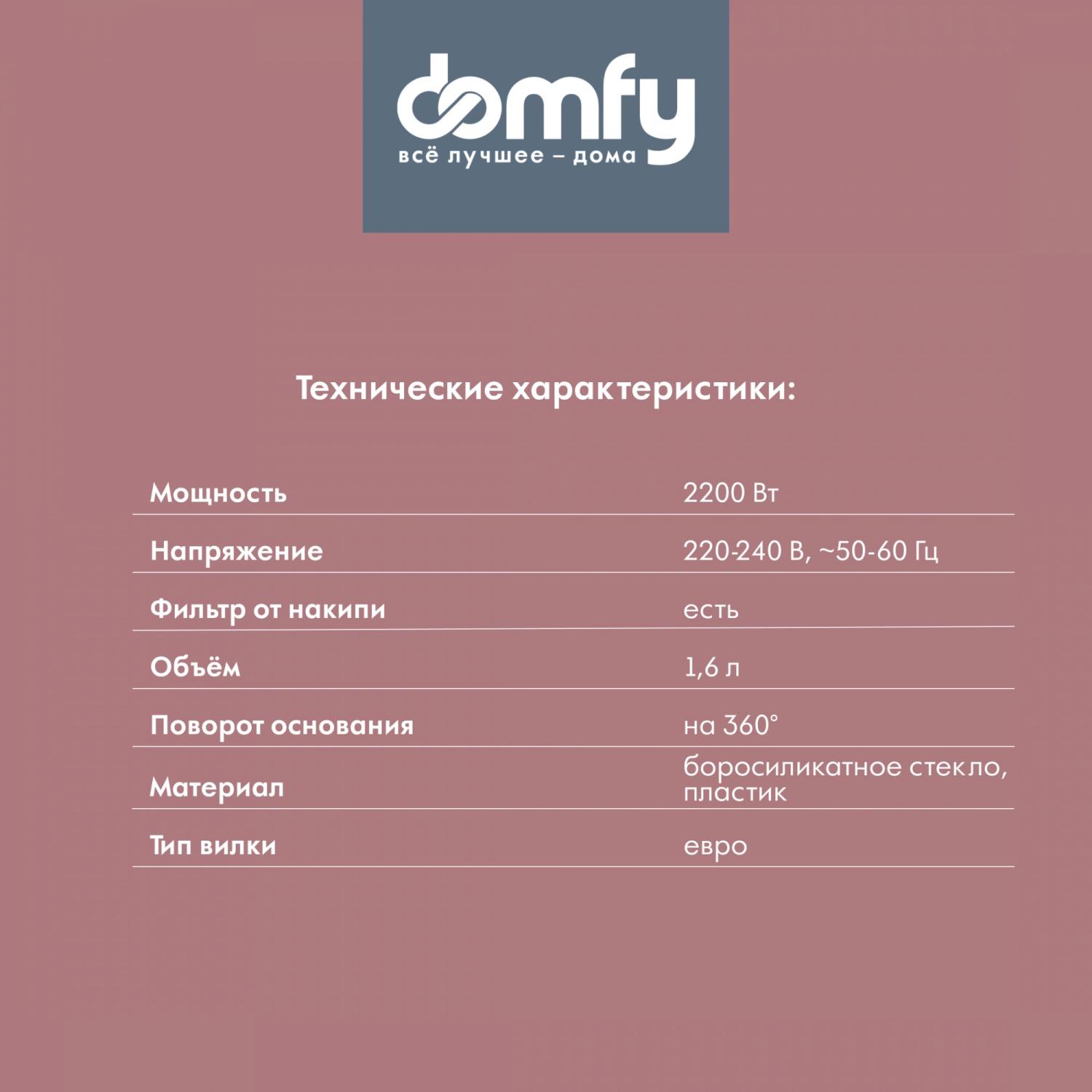 Чайник электрический Domfy DSB-EK304 1.7л. 2200Вт черный корпус: стекло/пластик / 4dealer.ru