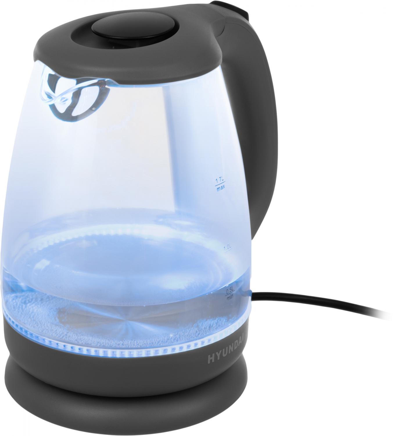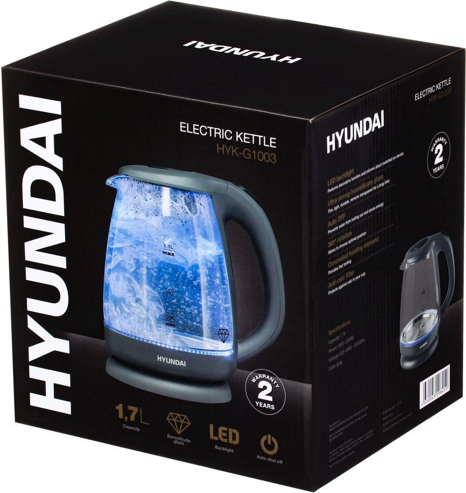 Чайник электрический Hyundai HYK-G1003 1.7л. 2200Вт серый корпус: стекло/пластик / 4dealer.ru