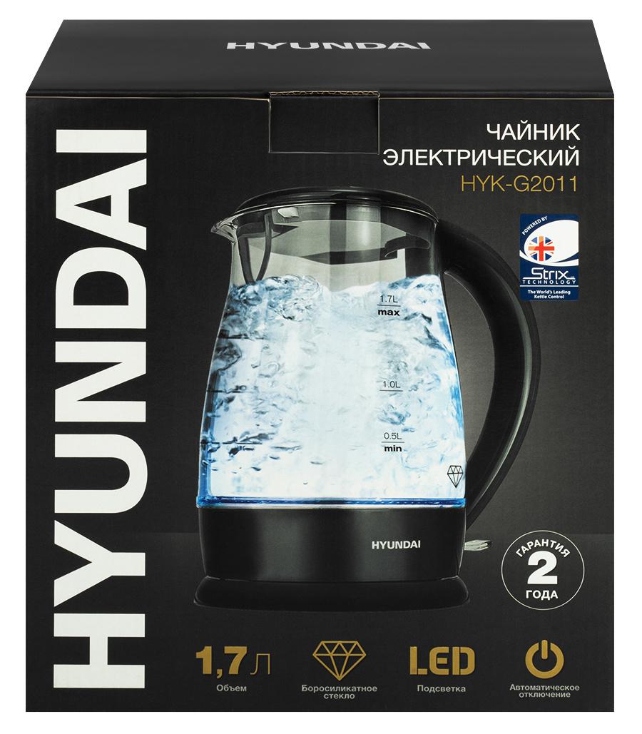Чайник электрический Hyundai HYK-G2011 1.7л. 2200Вт черный корпус: стекло/пластик / 4dealer.ru