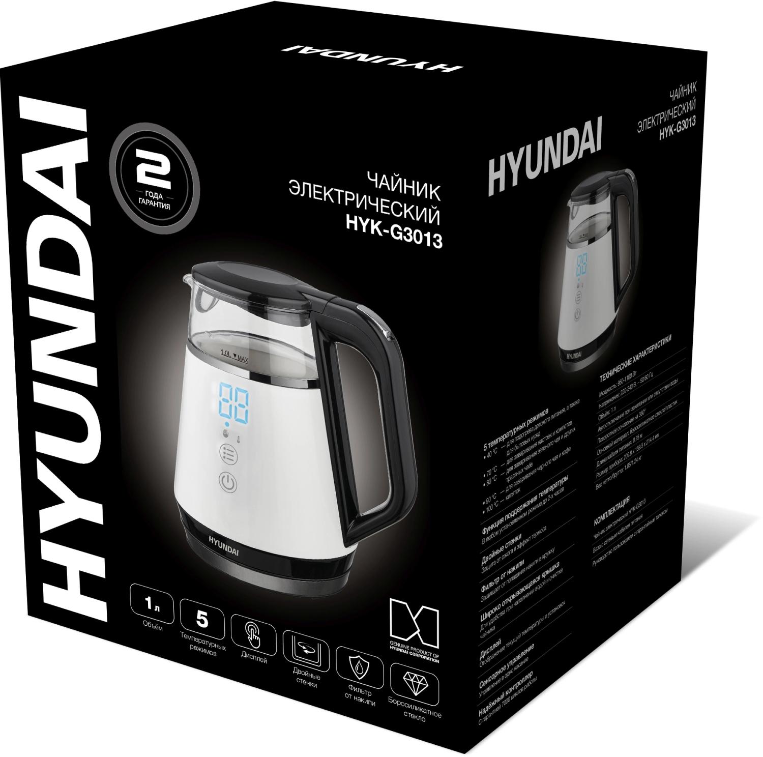 Чайник электрический Hyundai HYK-G3013 1.0л. 1100Вт белый/черный корпус: стекло / 4dealer.ru