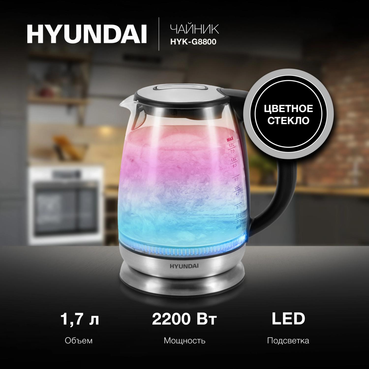Чайник электрический Hyundai HYK-G8800 1.7л. 2200Вт черный/серебристый корпус: стекло / 4dealer.ru