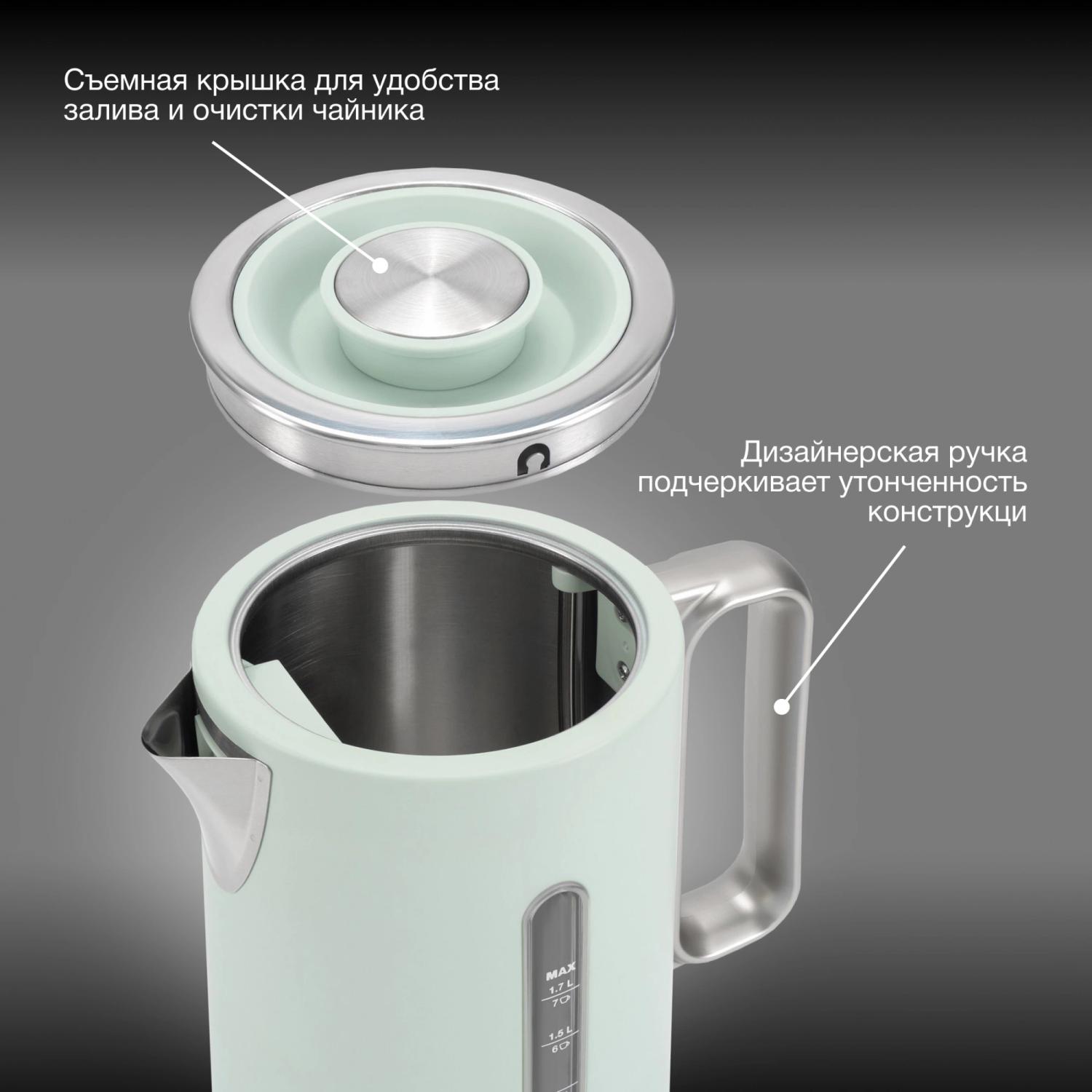 | Конструктивные особенности | отсек для шнура, подставка 360, съемная крышка, фильтр от накипи |