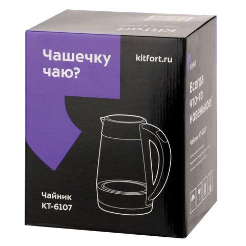 Чайник Kitfort КТ-6107 выполнен из сочетания трёх материалов — стекла, пластика и нержавеющей стали. Мерная шкала нанесена на прозрачную часть корпуса. Для вашего удобства на ручке расположена панель управления чайником.Благодаря широкому носику вы можете наливать напиток без риска разлива или разбрызгивания, а также наполнять чайник через удобный широкий носик.