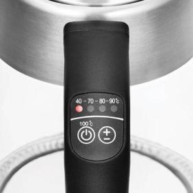 Чайник оснащён терморегулятором и может нагреть воду от 40 до 100 °С, что очень удобно при заваривании различных сортов чая, приготовлении кофе и подогрева детского питания. Чайник также оснащён функцией поддержания температуры до 2 часов.