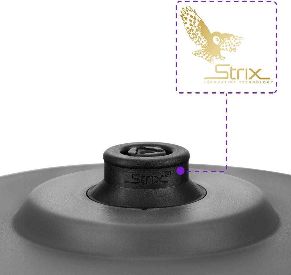 Чайник оснащён контроллером Strix - № 1 среди поставщиков компонентов для электрочайников. Он устраняет риски короткого замыкания и возгорания прибора. Обеспечивает защиту при закипании и при включении чайника без воды.