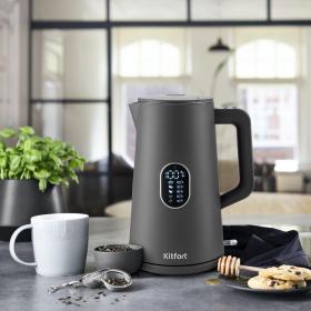 Чайник Kitfort КТ-6115 отлично послужит для чаепития дома, в офисе или на даче! Он может вскипятить воду или нагреть её до температуры 40, 60, 85, 90 или 100 °С, что удобно при заварке различных сортов чая, приготовлении кофе и подогреве детского питания.Корпус чайника двойной: внутри он выполнен из нержавеющей стали, а снаружи защищен прочным пластиком, что предотвращает опасность обжечься, а также делает чайник более экономичным, так как двойной корпус лучше сохраняет тепло.