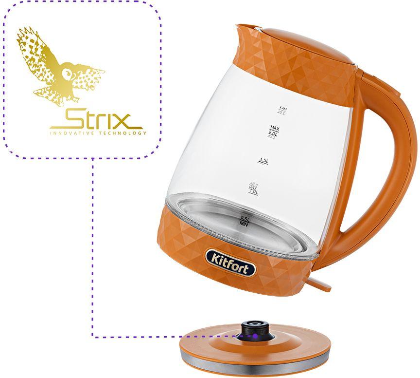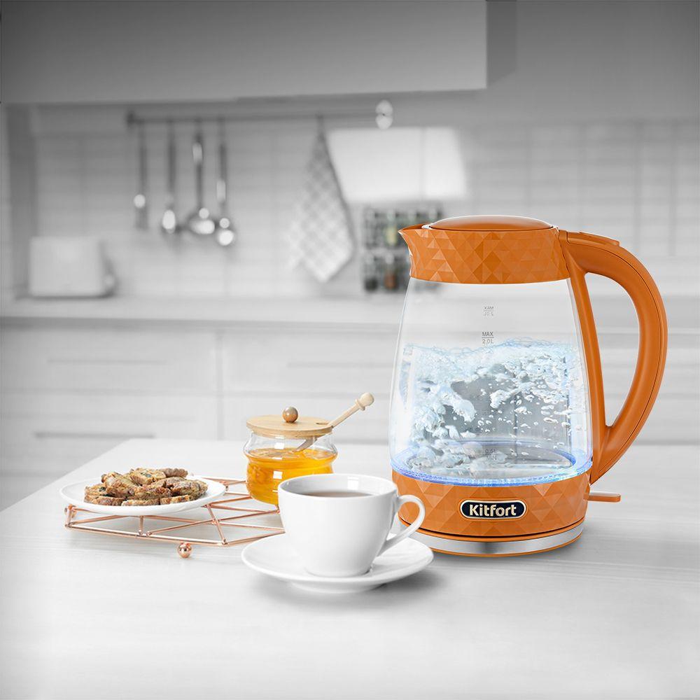 | Описание | Мощный и вместительный чайник Kitfort КТ-6123 отлично подойдёт для тёплых встреч с семьёй и друзьями. За один раз в чайнике можно вскипятить до 2л воды. Этого хватит, чтобы приготовить горячие напитки на большую семью. |