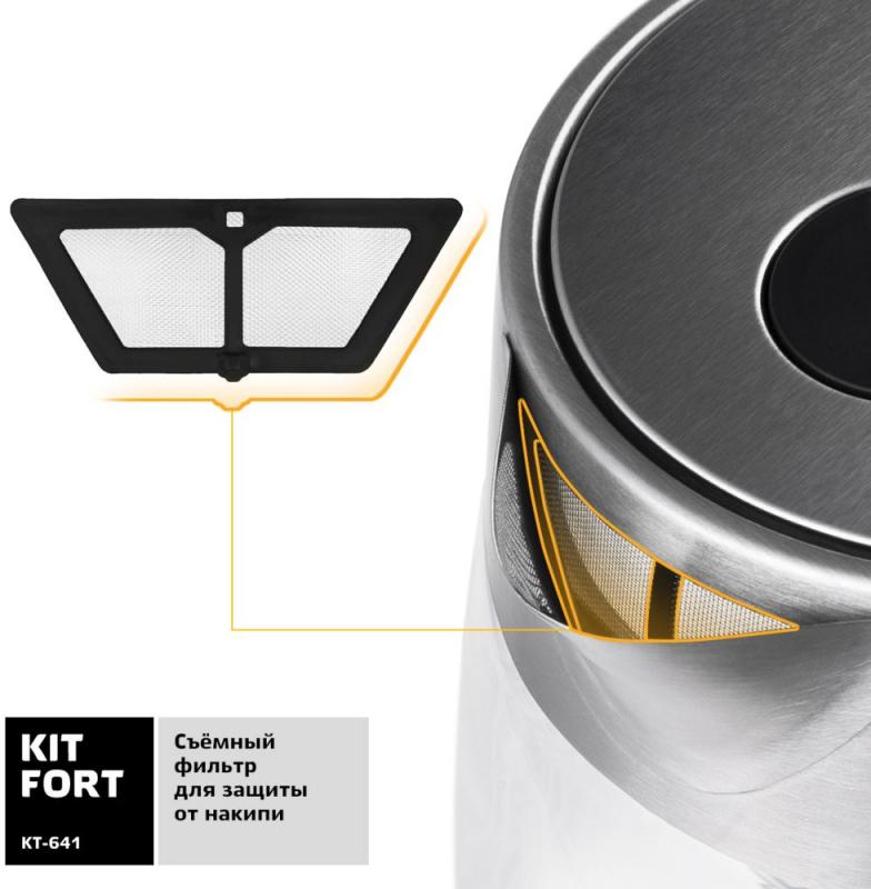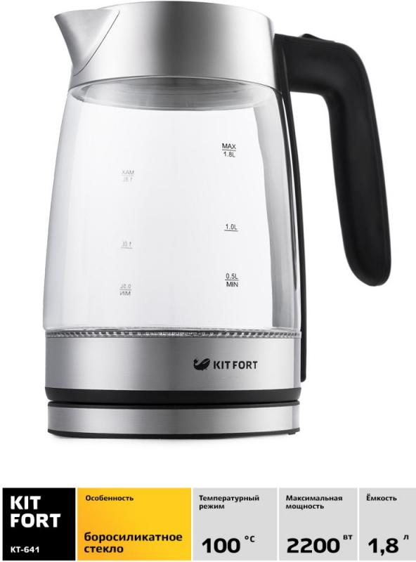 Чайник электрический Kitfort КТ-641 1.8л. 2200Вт серебристый (корпус: металл)