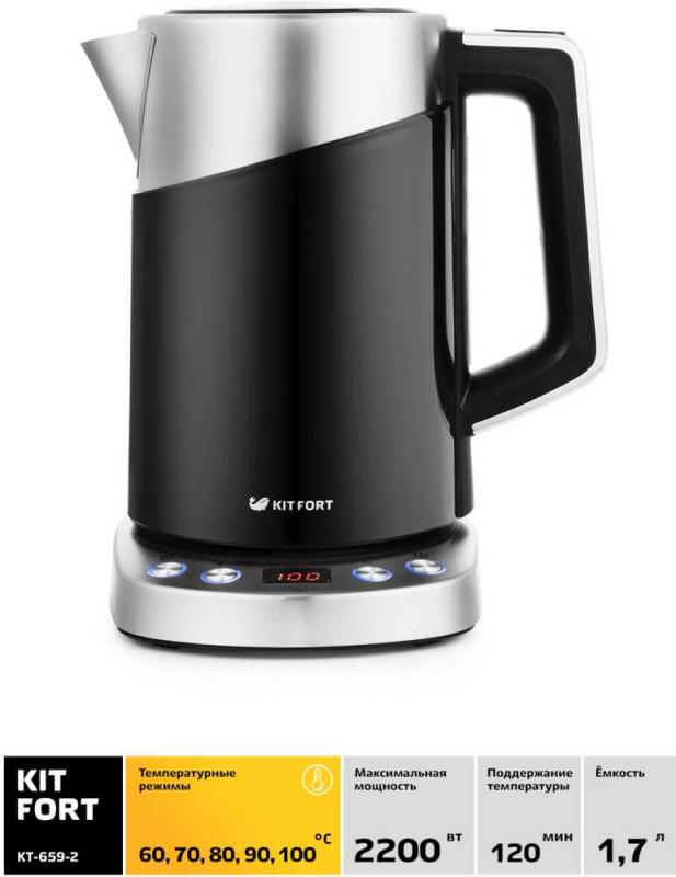 Чайник электрический Kitfort КТ-660-2 1.7л. 2200Вт черный (корпус: пластик)
