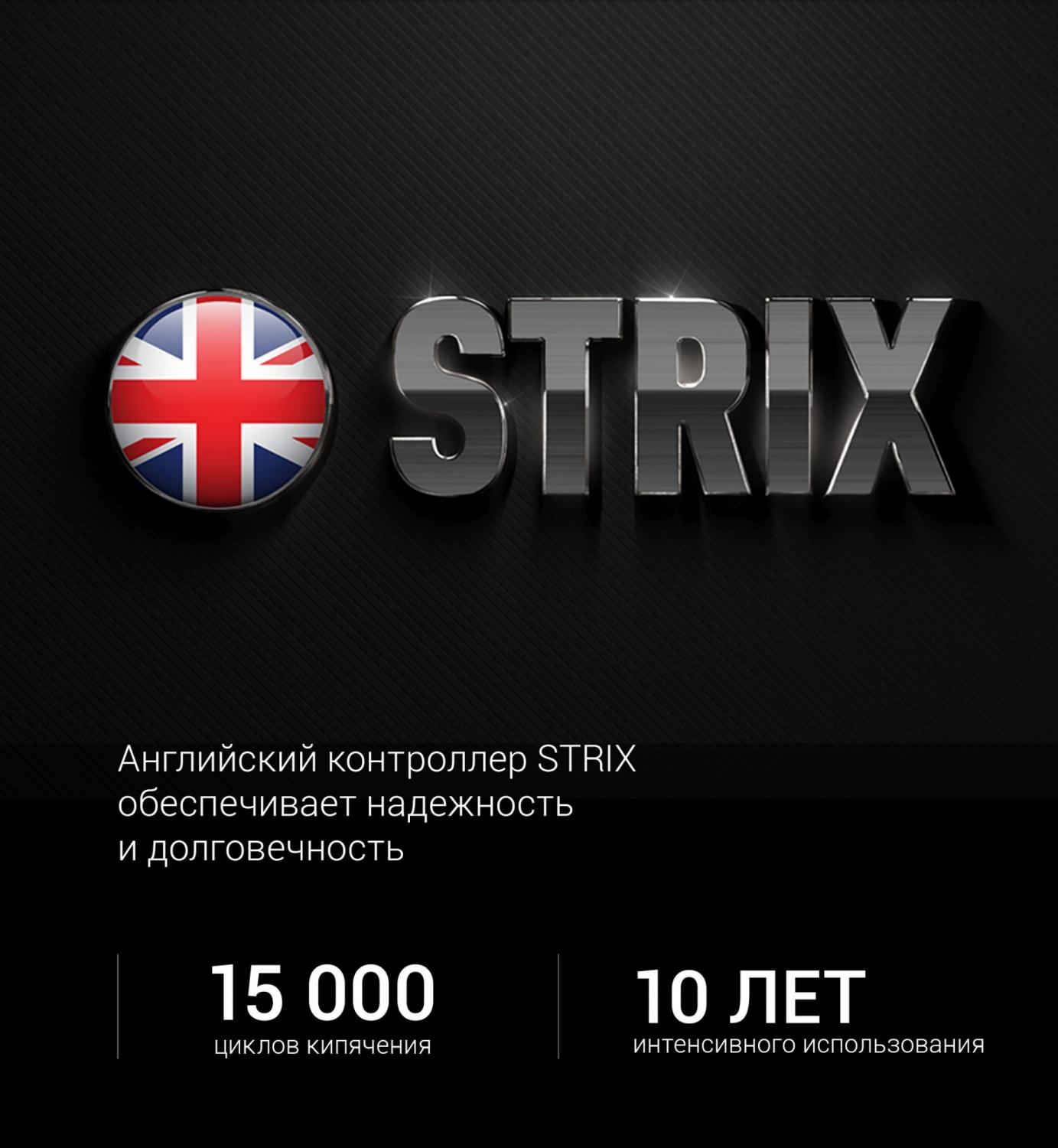 Описание Запатентованная технология WATERWAY PRO – наливайте воду в чайник без открытия крышки. Английский контроллер Strix обеспечивает 15 000 циклов кипячения, что равно 10 годам интенсивного использования. Корпус из высококачественного пластика. Индикатор уровня воды. Блокировка включения без воды.