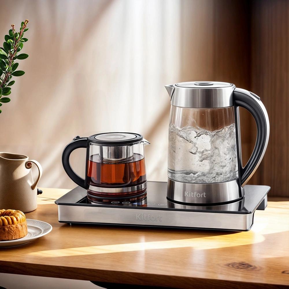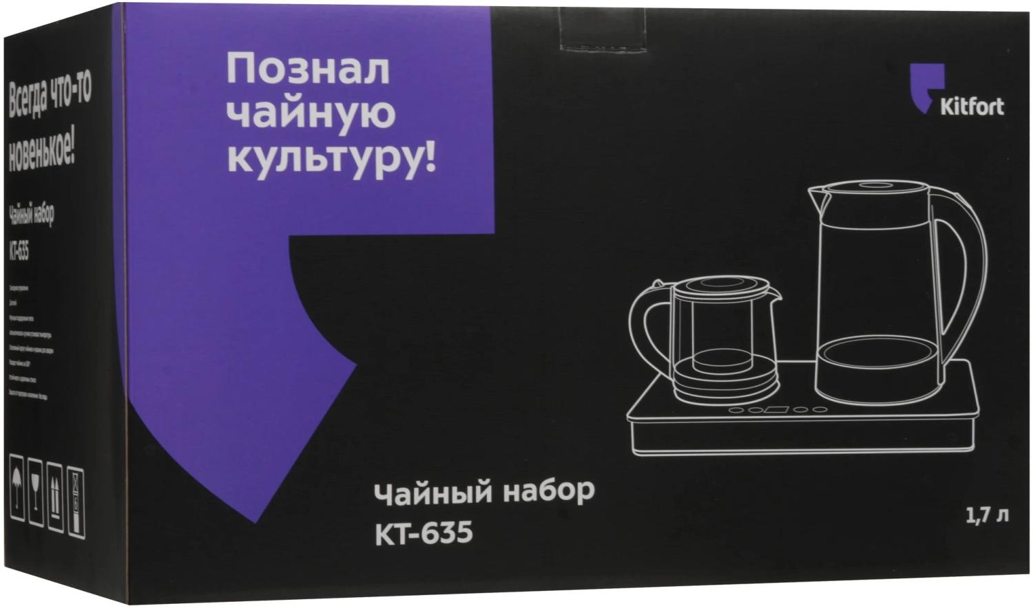 Чайный набор Kitfort КТ-635 содержит в себе все необходимое для того, чтобы организовать чаепитие небольшой семьи: электрочайник и небольшой заварник. Модель выделяется элегантным дизайном, обеспеченным прозрачным оформлением колбы и серебристо-черной расцветкой конструктивных элементов. Чайник имеет объем 1.7 л, оптимальный для того, чтобы попотчевать горячими напитками сразу нескольких членов семьи или их гостей. За счет высокой мощности на уровне 2200 Вт на кипячение воды будет тратиться совсем немного времени. И электрочайник, и заварник в чайном наборе Kitfort КТ-635 располагаются на подставке, имеющей функцию поддержания температуры. Вам не придется повторно кипятить воду: она будет оставаться горячей. Предусмотрена возможность как кипячения воды, так и доведения ее до температуры 70 градусов, благодаря чему вы сможете приготовить ряд горячих напитков в точном соответствии с их рецептурой. О безопасном использовании чайного набора свидетельствуют системы защиты от перегрева и от включения без воды. Внешний вид и/или характеристики товара могут быть изменены производителем в соответствии с производственным процессом.