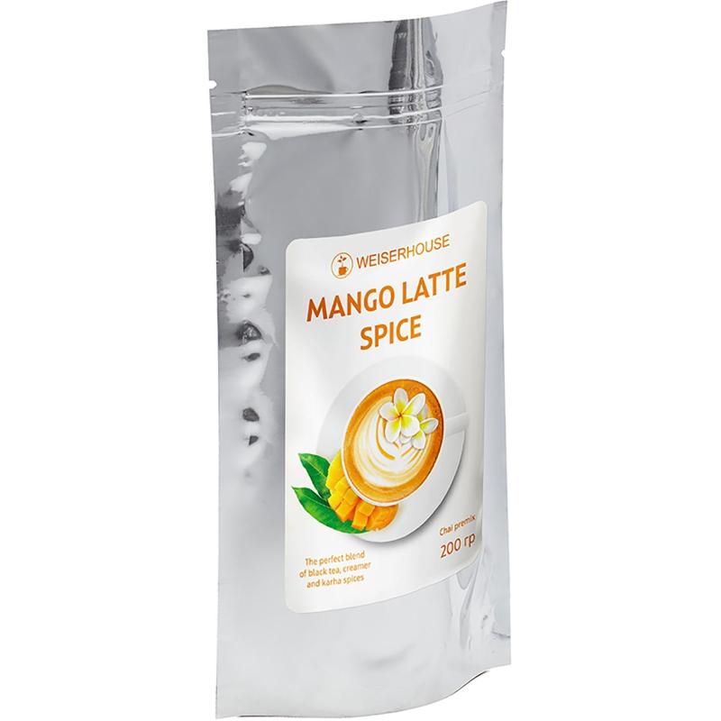 Чайный напиток Weiserhouse Манго Латте Спайс 200 г<br><br>Mango Latte Spice — сочетание сладости и пряности, в основе которого — отборный чёрный чай. Сочное манго придаёт напитку фруктовую свежесть, а смесь ароматных специй добавляет согревающие ноты. В результате получается бодрящий чай, который идеально подходит для любого времени дня.<br><br><b>Состав:</b> чай чёрный, экстракт манго, корица, кардамон, гвоздика, кокосовые сливки, сахар, глюкозный сироп, мальтодекстрин, регулятор кислотности Е340, агент антислеживающий, эмульгатор Е471, антиокислитель Е307, ароматизатор манго, ароматизатор специи.<br><b>Способ приготовления:</b> № 1 Горячий чай: 8 грамм на 100 мл готового напитка. Залить горячей водой или молоком, взбить венчиком или в капучинаторе.<br>№ 2 Холодный чай: 8 грамм на 100 мл готового напитка. Налить немного горячей воды, размешать, затем добавить холодную воду или молоко, добавить лёд.<br><b>Вес:</b> 200 г.<br><b>Тип упаковки:</b> пакет.<br><b>Условия хранения:</b> хранить в чистом, хорошо вентилируемом помещении, без посторонних запахов, при температуре не выше 17-20°С с относительной влажностью воздуха не выше 70%.<br><b>Страна производитель:</b> Россия.