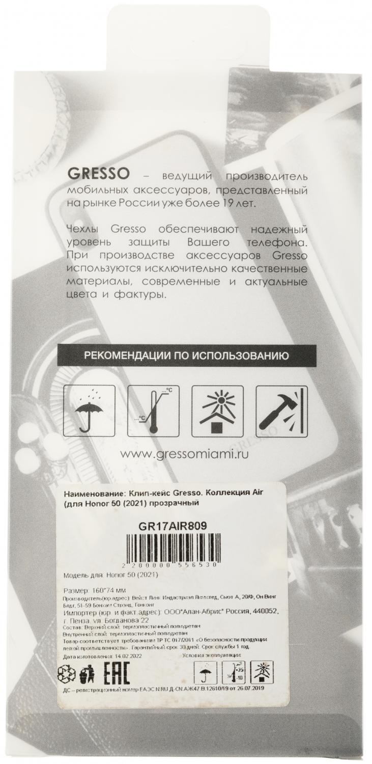 Чехол (клип-кейс) Gresso для Honor 50 Air прозрачный (GR17AIR809) / 4dealer.ru
