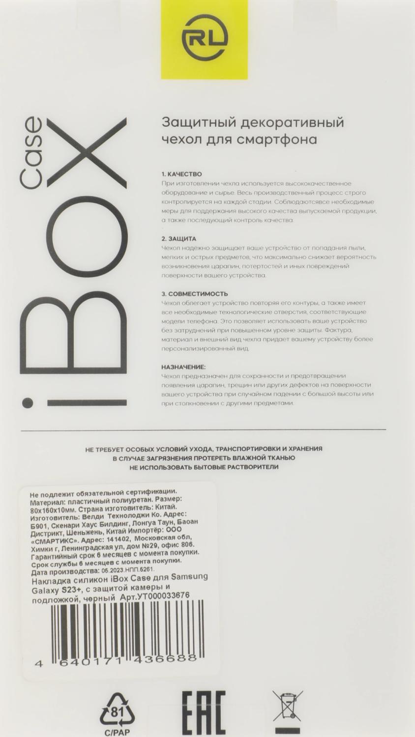 | Описание | Накладка силикон iBox Case для Samsung Galaxy S23+, с защитой камеры и подложкой, надежно защитит корпус Вашего устройства от пыли , царапин и других механических воздействий. |