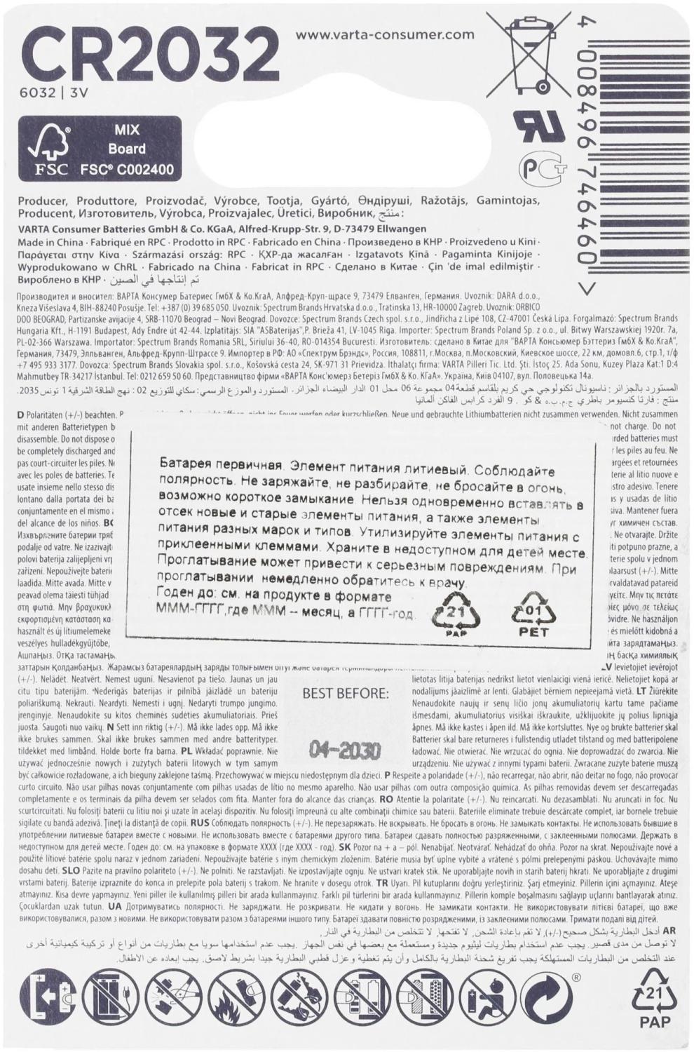 | Модель | CR2032 BL2 Lithium 3V |