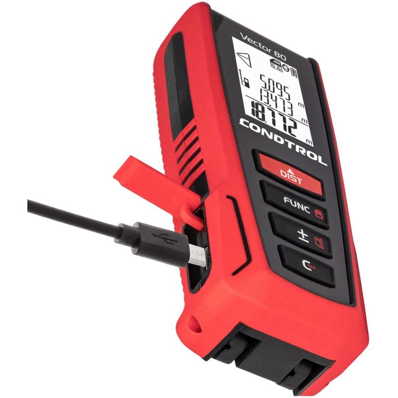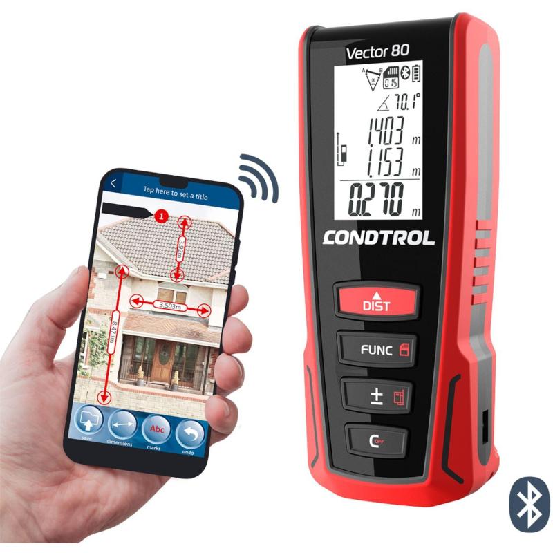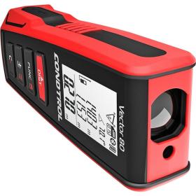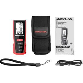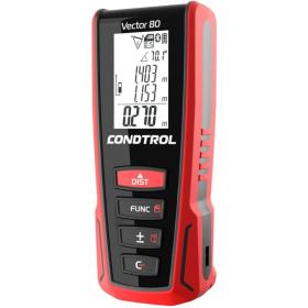 Лазерный дальномер Condtrol Vector 80 с поверкой (1-4-129)<br><br>Condtrol Vector 80 — современный лазерный дальномер, предназначенный для быстрого и точного измерения расстояния до 80 м. Большой набор вычислительных функций, пылевлагозащищенный корпус, модуль Bluetooth позволяют использовать Condtrol Vector 80 в профессиональной среде. Главная особенность — встроенный 3D-акселерометр, с помощью которого можно вычислить расстояние между двумя произвольными точками в пространстве. <br><br>Функция Point-to-Point<br>Лазерная рулетка Condtrol Vector 80 может измерять расстояние между двумя произвольными точками в пространстве, благодаря встроенному 3D- акселерометру. Таким образом, вы сможете всего по двум замерам определить длину отрезка, проходящего сквозь здания или препятствия (стена, деревья, забор). <br><br>Передача данных по Bluetooth<br>Встроенный модуль Bluetooth позволяет работать с приложением Condtrol Smart Measure, которое можно загрузить из Google Play или App Store.<br><br>С приложением Condtrol Smart Measure вы сможете:<br>— хранить в памяти смартфона неограниченное число измерений;<br>— фотографировать объекты, помещения, декор, мебель и наносить размеры на них, делать ремарки, комментарии, что по достоинству оценят архитекторы, дизайнеры, декораторы;<br>— рисовать планы помещений с размерной сеткой;<br>— сохранять и экспортировать полученные файлы, что значительно упрощает работу строителей, дизайнеров, изготовителей мебели и т. д.<br><br>Скачать ПО можно в магазинах приложений. <br><br>Площадь стен (функция маляра)<br>Рассчитать расход материалов для ремонта (обои, шпаклёвка) с дальномером Condtrol Vector 80 не составит труда. С функцией маляра вы быстро определите площадь стен помещения, достаточно один раз измерить высоту потолков и длину всех стен. Дальномер сам складывает полученные площади и показывает их нарастающим итогом. <br><br>Горизонтальное и вертикальное проложение по одному замеру<br>Встроенный датчик наклона позволяет вычислить горизонтальное и вертикальное проложение от места установки дальномера до объекта, например, когда нужно определить высоту здания и расстояние до него при наличии преграды (заграждение, дерево, ров). <br><br>Пылевлагозащита IP 54<br>Благодаря герметичному корпусу, лазерная рулетка надёжно защищена от брызг воды и пыли. Большие силиконовые кнопки не потрескаются на морозе, их удобно нажимать даже в перчатках. Это позволяет использовать Condtrol Vector 80 в условиях стройплощадки. <br><br>Крепление на штатив и откидная пятка<br>Для комфортной работы замер расстояния может производиться с передней, задней кромки корпуса, со штатива или с откидной пятки. Откидная пятка даёт возможность производить замеры с узких мест, углов или с края поверхности (стол, подоконник). <br><br>Встроенный Li-ion аккумулятор<br>Отсутствие батарейного отсека повышает жёсткость корпуса и степень пылевлагозащиты. Ресурс аккумулятора приятно удивит пользователя. Одного часа зарядки хватит на несколько сотен измерений. Зарядить дальномер можно через кабель microUSB. <br><br>Condtrol Vector 80 — точный лазерный дальномер, который станет отличной альтернативой обычной рулетке и позволит проводить измерения дома или на стройплощадке без напарника.<br><br>Комплектация: дальномер, сумка-чехол, ремешок, кабель для зарядки, руководство пользователя.<br><br>Внешний вид и/или характеристики товара могут быть изменены производителем в соответствии с производстве