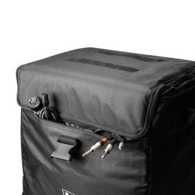Защитный чехол LD Systems DAVE 8 SUB BAG предназначен для сабвуфера систем DAVE 8 XS и DAVE 8 ROADIE и изготовлен из водоотталкивающего нейлона. Чехол оснащен удобными ручками и колесиками для удобной транспортировки, ремнем для закрепления чехла DAVE 8 SAT BAG, а также большими карманами на молнии для хранения аксессуаров.
