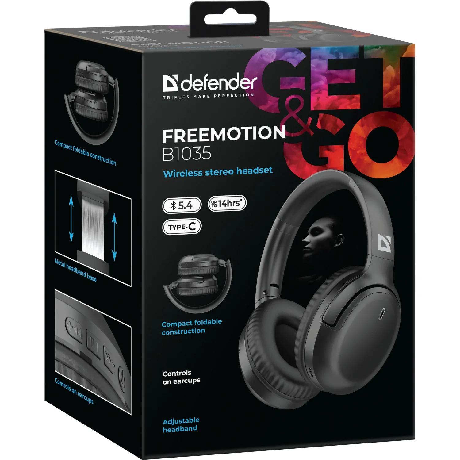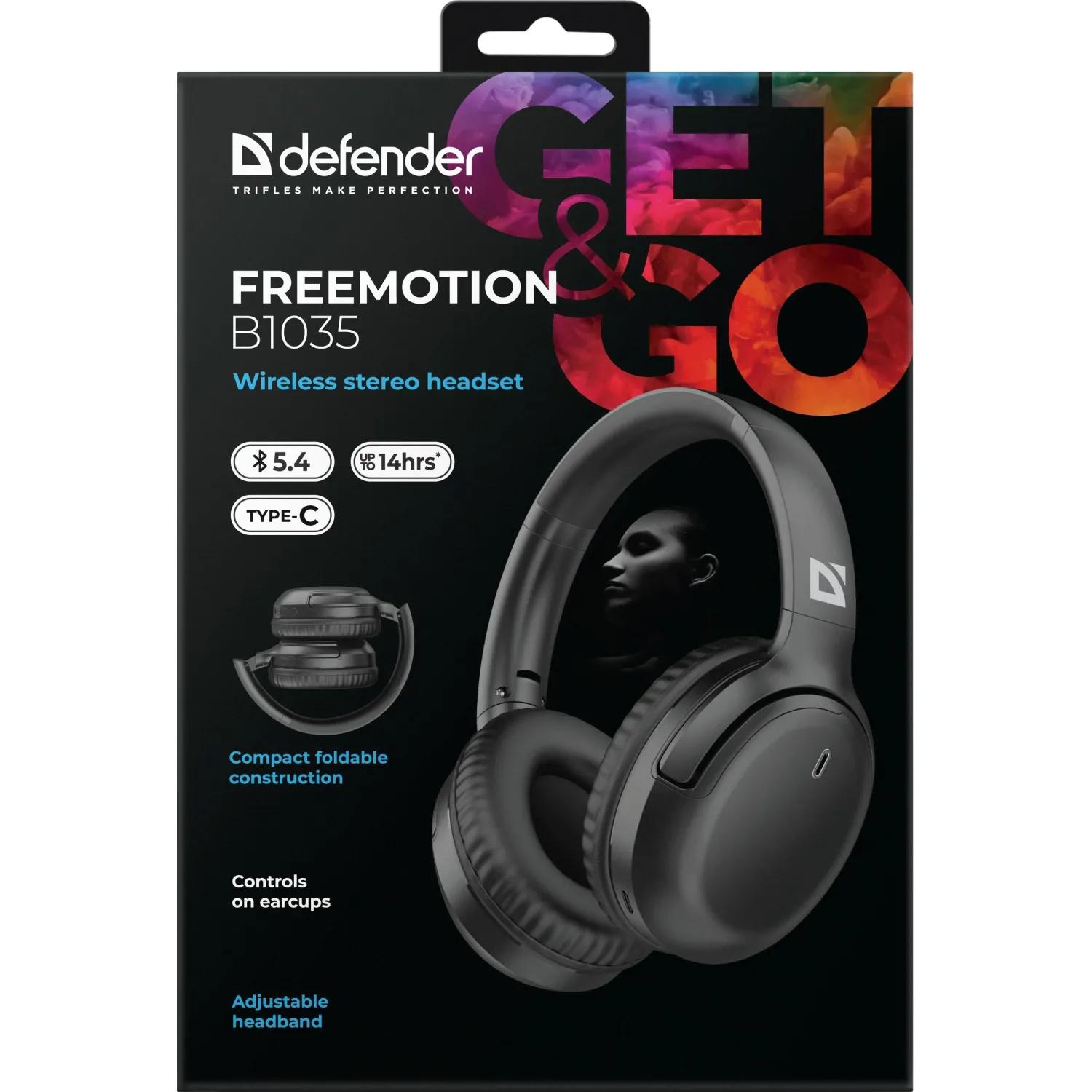 Defender FreeMotion B1035 — это беспроводная Bluetooth-гарнитура (накладные наушники) черного цвета, предназначенная для повседневного использования. Она сочетает в себе портативность, удобство управления и длительное время автономной работы, подходя для прослушивания музыки, общения по телефону или работы с мультимедиа на смартфоне, ноутбуке или планшете.