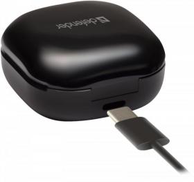 Полностью беспроводные (True wireless) стильные мини-наушники с микрофоном в комплекте с зарядным кейсом и сменными амбушюрами разного размера. Моментальное соединение с телефоном, совместимость с iPhone и устройствами на базе Android.