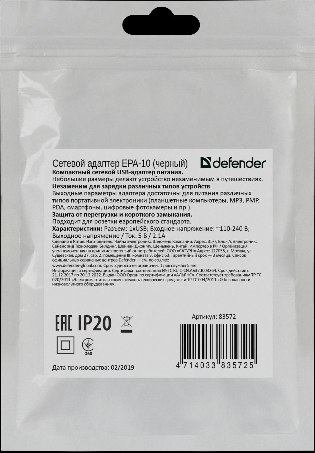 Универсальный портативный сетевой адаптер питания с одним USB портом. Подходит для энергоемких устройств (2.1A). Тип упаковки - пакет.